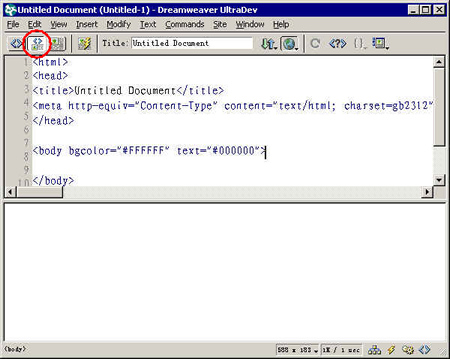 这是Dreamweaver Ultradev主界面,乍一看与Dreamweaver并无多少区别。