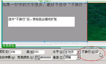 在属性面板中,如果不想文字换行,不要选中“不换行”。这种方式可以保持其它表格不变形。