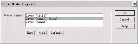 layer "menu1" ",因为我们想要menu1这个层对"经典论坛"响应。然后点下面的"hide"按钮,OK。
