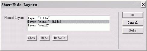 layer "menu1" ",因为我们想要menu1这个层对"经典论坛"响应。然后点下面的"show"按钮,OK。