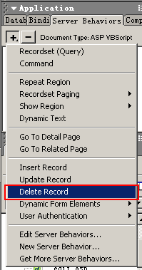 MX里自带了一个Delete Record(删除记录)服务器行为,来对数据库的删除进行操作。其实和上一章里我们学习的更新数据库操作大同小异,先通过浏览数据,选择要删除的数据,然后进行相应的删除页页,确认删除。具体步骤在这里也不一一详述,请参见上一见。
