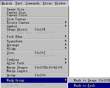 4、选择菜单Modify->Mask Group->Mask to Path。