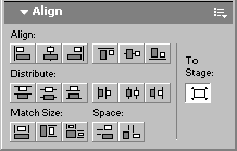 所有图片导入完成后都将被放置在场景中,将其他图片从场景中删除,只留下用作背景的图片。不用担心,删除的图片还保留在库(Library)中,以后会用到他们。选中背景图片后打开Aligh(排列)面板(如下图)(快捷键 Ctrl+K),按下 To Stage按钮