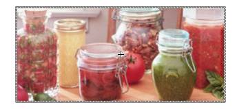 3.返回主场景,为了便于理解现将默认图层更名为“masked”,选中该图层的第1帧插入一关键帧,打开库面板,将制作好的图形元件“food”拖放到工作区中,创建一实例,从工具箱中选取箭头工具,调整实例的位置,如图3所示: