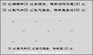 将初中学习过的知识向高中的知识过渡,让学生明白不同的液体混合时体积并不是简单地相加,如:50ml酒精和50ml水混合,其混合后的总体积并不是100ml,而是略小于100ml(如图4)。而不同的气体相混合,其体积是能够相加的,如:50ml