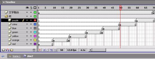 制作方法和步骤和画面1的象类似,就是让画面不断的出现红色的树,黄色的树等,从层里