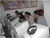 学员们认真的学着,专心地记着,连岁数最大的卫生院职工刘建华先生(54岁)也认真的学着,他虽然认不得字母,但还是认真的翻着字典对照着查找汉字及它们所对应的拼音字母。他还风趣地说:"六十岁学吹锁哪,不算晚,我现在学这洋玩意还来得及"。