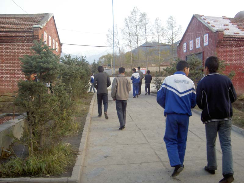 有时,老师也怕他们太冷了!就在上课的时候让他们集体到教室外的空地上跑几圈,以此来暖和暖和身子。