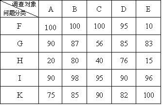 我们把收集回来的问卷进行整理、统计、分类,用A代表居民,B代表塔里管理人员,C代表学生,D代表市场生意人,E代表游客,对不同的调查对象抽取20人作分析; F代表知道田州古塔的人,G代表周围环境对田州古塔有很大影响的人,H代表保护及措施合理的人,I代表对田州古塔的现状担忧的人,K代表今后应该开发田州古塔的人,最后,制定成如下信息表,