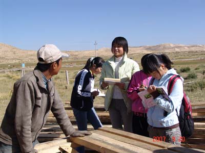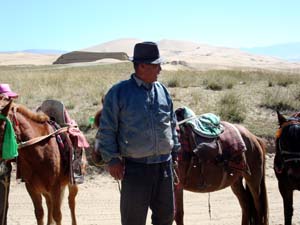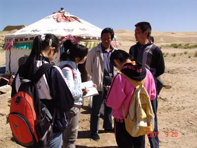 他亲切地对我们说:“我有几匹马。旅游旺季的时候,我就带它们来到沙岛。沙岛有个“骑马,骆驼区”供游客游客娱乐,另一方面也为自己赚些生活费。沿沙岛走一圈套0元钱,你们要骑吗?”我们钱少,不得不拒绝了。我们有,聊了起来。他说:“我们4月份就来这里,年手、收入大概是500---600元左右。这里风景好,人也多,我们一家都来这里挣钱。唯独有一个缺点就是风沙太大!”