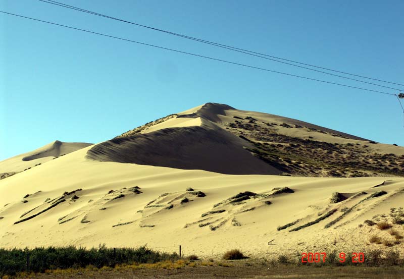 | 这亲切来自于自然的风光,这舒畅来自于安然的情调。这空气,这略带着咸味的湖水味,这一切的一切,将悠悠的存在于每一个游人的胸膛。并在每个人的记忆中,留下深深的回忆与寄托,因为,这种永不凋谢的寄托是大自然赐给每一个来这里的人们的礼物。爬上了最高的沙山顶,登高一望,我不禁惊讶地叫了起来,这是一幅多么壮观的景色呀! |