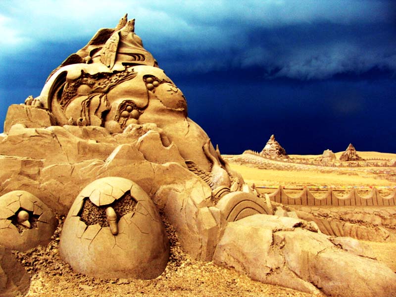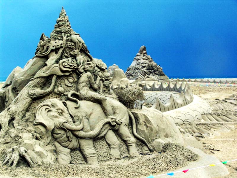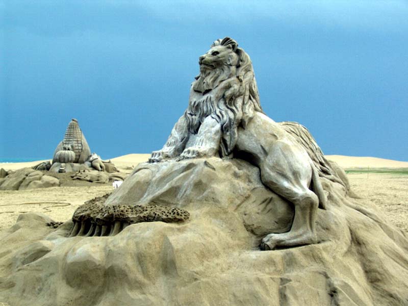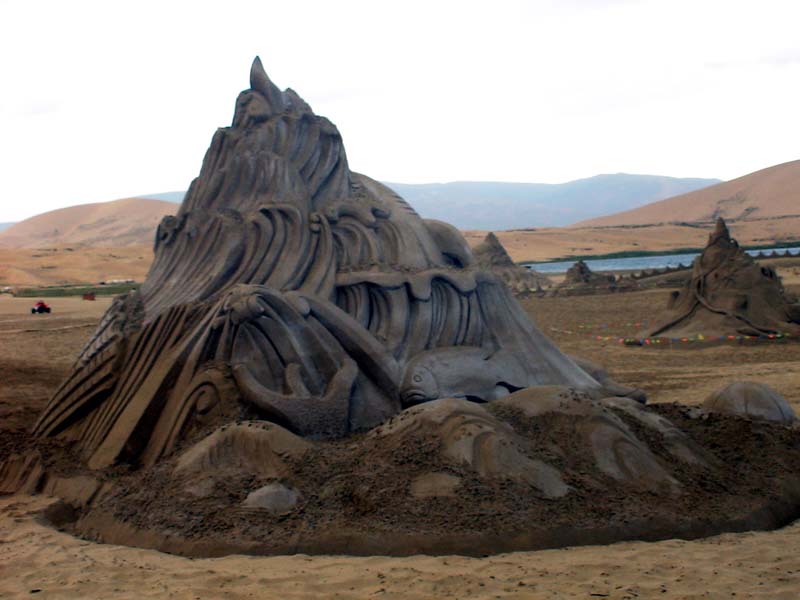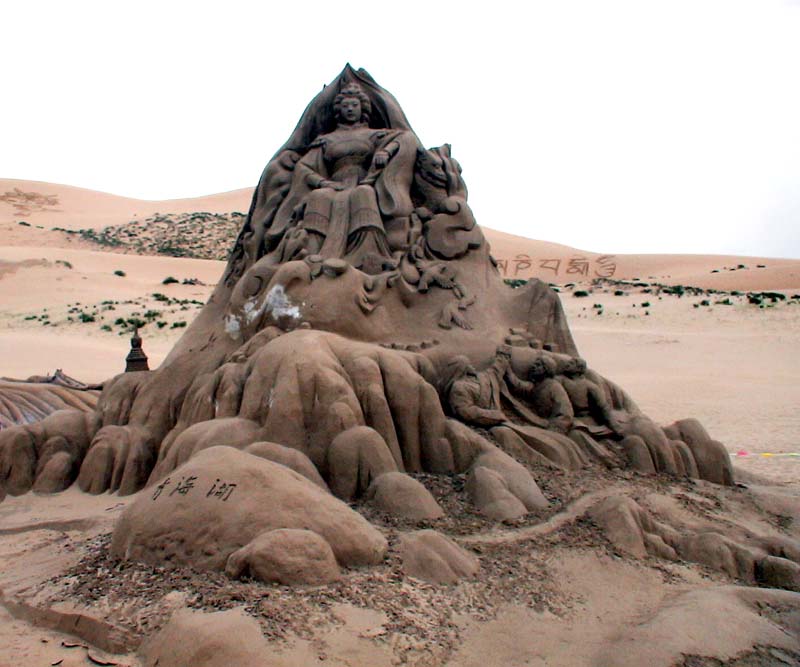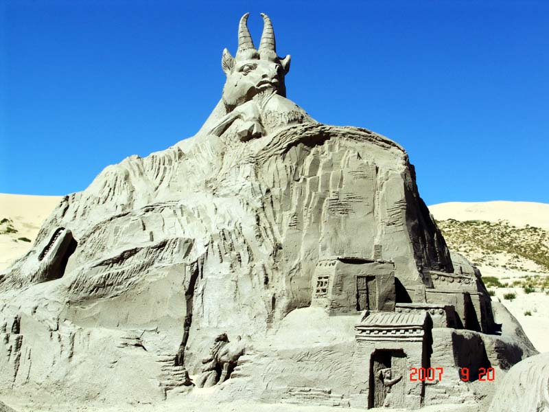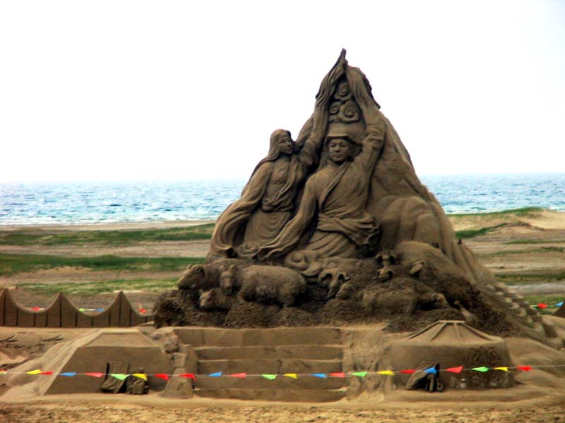| 形象表现:以藏民族舞蹈形象与动物相亲为组合造型,以示藏族人民对自然生态的热爱,人类与自然的融合,唤起人类对动物的关爱。作品突出以人为本,人与自然的亲爱关系,是对本次沙雕节人与自然主题的升华。 |