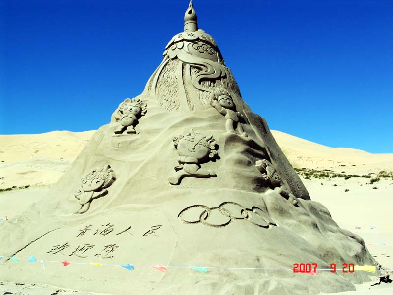 形象表现:中华民族是龙的传人,青藏高原为昂立的龙头,龙腾西海是以巍巍昆仑为背景,中华长龙从青海湖中跃出,潜龙腾海,栩栩如生,寓意着中华民族崛起的精神。