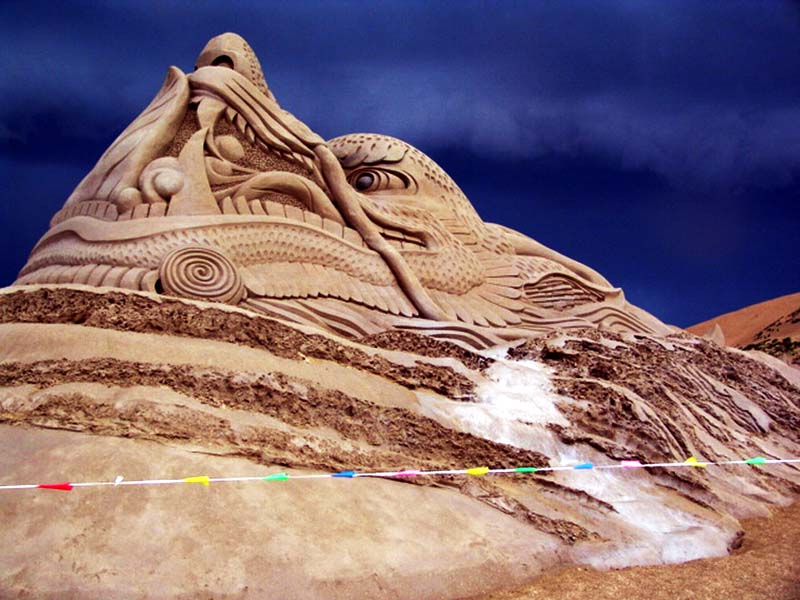 如果以沙雕的整合性而言,沙雕艺术是集雕塑、绘画、建筑、大地艺术、体育休闲、户外娱乐为一体的边缘性艺术。这种边缘性又决定沙雕创作者不仅有良好的艺术感觉和心态,还要具备户外艺术创作所必须的强健体魄和敬业精神。 |