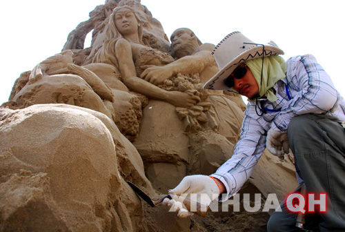 | 3 、自上而下局部完成:沙雕与其他材料的雕刻不同,为了防止沙雕的不断风化,必须放弃其他雕刻门类整体 ―― 局部 ―― 整体这一制作定律,而把整体放在心上,局部一次完成,直至底部。 |