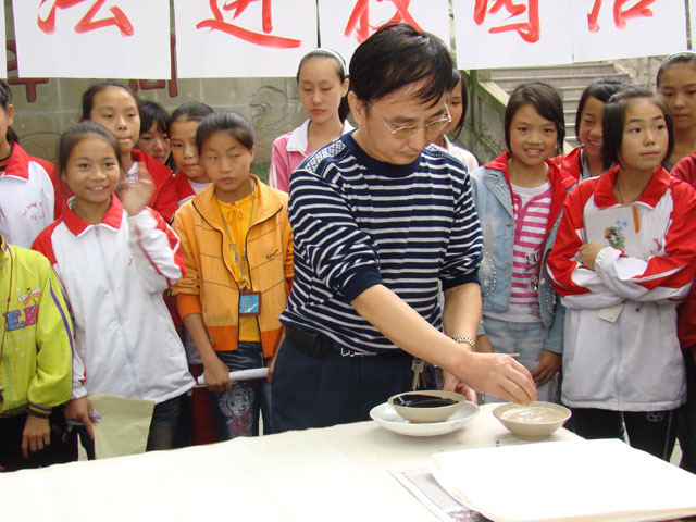 Ma Xiaoping was born in April, 1958 and came from Longqi County, Sichuan province. After graduated from senior high school in 1976, he became a literate youngster in the sixth detachment of the sixth brigade in Xinhua commune in Longchang County, Sichuan Province. Ma Xiaoping joint the PLA in 1978 and served as a secretary in the individual installation company of Army Corps of Engineers of Shenyang military region in Yingkou City, Liaoning Province. Since he loved calligraphy when he was a child, he practiced it when he was free in the army. He felt very pity that the wasted newspaper was used to light a fire by the cookhouse squad, so after asked the commander’s permission, he practiced calligraphy on those newspapers before the cookhouse squad used it to light a fire. His comrade-in-arms couldn’t understand why he did like so. After practicing for a period of time, a calligrapher said that his calligraphy was lack of strength of strokes and he felt very confused at that time. Sometimes later, Ma Xiaoping came across with a piece of finger calligraphy called A Night Anchorage near the Feng Bridge written by a calligrapher in Qing dynasty, which is full of forceful strokes and graceful. Ma was fully enlightened and he thought why I don’t try to practice finger calligraphy? Since then, he began his journey of finger calligraphy.