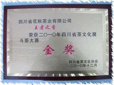 黄敏:近年来,花秋茶业产品获得过什么重要的称号? 王芸主任:依托御题“天下第一圃”、花秋贡茶的深厚文化历史底蕴,大力实施品牌战略,荣获“四川省名牌产品”、“四川省十大名茶”、“四川省著名商标”、“中国十大茉莉花茶品牌”、“国际名茶金奖”等称号。