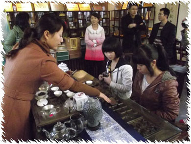 平乐花秋业生产基地办公室主任王芸对我们的采访提供了无偿的帮助,还亲自为我们示范"功夫茶"的沏泡。