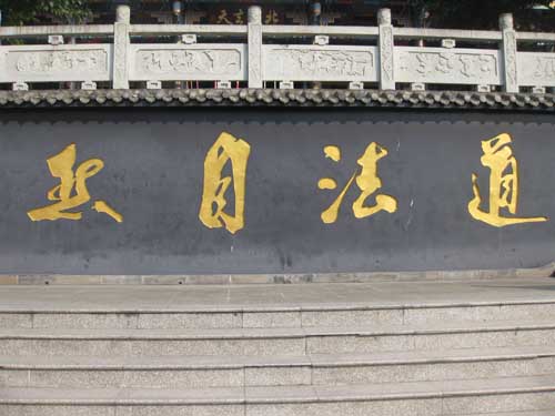 真武宫,细细观看宏大的建筑群,我们无不为道教文化的博大精深所震撼。从肃穆的山门进宫,迎面是一面壁照,两面都有一个遒劲有力的“道”字。绕过壁照,在高高的铜制香塔后面,并肩耸立的依次是慈航殿、真武宫、天师殿,左为玄武殿、文昌殿和老君阁,右面是苍溪县道教协会及游客娱乐中心。石梯两边是老子的《道德经》,洋洋五千言,究其精要全在“道”与“德”两个字中。《道德经》上方,那巨大的“道法自然”四个字诠释了道教的全部精髓。
