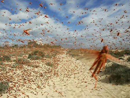 2004年11月21日,数百万只蝗虫蜂拥来到以色列红海之滨城市埃拉特,毁坏了这个以色列南部城市的大量 蝗灾 庄稼和鲜花。以色列政府动用了飞机喷洒杀虫剂灭蝗。