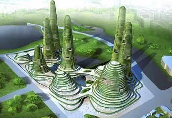 位于韩国首尔南部35公里的“Gwanggyo”梦幻城市由荷兰MVRDV建筑事务所设计,是一座新概念自给自足的绿色城市,采用“小山梯田”一样的建筑模式,每个“小山”中都拥有住房和办公区域、广场和购物中心、博物馆和休闲区域。 所有建筑的屋顶和平台还将串成一座生态公园,可改善城市中的区域气候和通风,还减少了对能源和水的使用量。每座“小山”周围被植被所环绕,各楼层之间的流通系统将会把水储存起来,用于日常的浇灌。预计可容纳的77000人,完成发展设想到2011年。 |