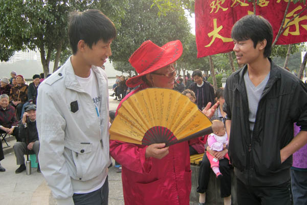 为了得到最原始的资料,2011年10月08日我们采访了“欢天喜地大家乐”灯戏团中正排练的老艺人。他们非常乐意的给我介绍了川北灯戏这门传统的文化艺术的特点、渊源,还组织团的老人们给我们表演了一场,让我们亲自感受了川北灯戏的魅力,这些老艺人的乐观和开朗给我们留下了深刻的印象。