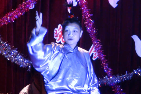这名同学的表演粗狂简洁,诙谐通俗,载歌载舞,妙趣横生,尤其是其风趣的表演,博得了全校学生捧腹大笑和热烈的掌声,也加深了同学们对川北灯戏的理解。