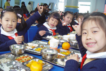 “现在生活好了,很多成年人也越来越偏爱肉食,这种不良饮食习惯必将影响到孩子。”金沙小学校长钟樱平时在观察孩子吃饭时也发现,在他们的剩菜中,全是素菜,“只要有肉,有的孩子就会一点蔬菜都不吃”。由此可见,孩子们的膳食营养摄入并不均衡。为了让孩子们了解和接受蔬菜,从本月起,学校每天在饭前都会由“健康大使”介绍当天食物的营养成分。为了让孩子们能充分享受午餐时间,放松压力,饭前,学生还要齐唱学校自编的《金沙好味道》健康饮食歌。同时,食堂还将专门播放音乐。对于该做法,在学校之前的调查中,家长们“举双手赞成”。