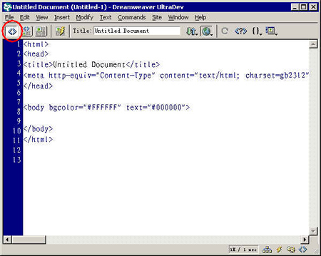 这是Dreamweaver Ultradev主界面,乍一看与Dreamweaver并无多少区别。