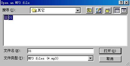 打开一个需要截取的mp3文件,在弹出的”open an mp3 file”对话框中选取一个mp3文件(图17)然后打开想要切割的声音文件。在打开声音文件的过程中,会有一个进程指示器显示当